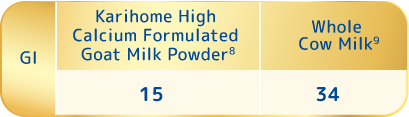 *Goat milk's casein is mainly A2 ß type and cow milk's is A1+A2 ß type. The digestion speed is compared with those two types of protein.   1.Recent Advances in Digestion, Absorption and Allergenicity of Goat's Milk 2012   2.Exclusive Goat Milk brand Winner with the Superior Taste Award   3.J Sci Food Agric 2010; 90 : 112 - 116 Goat milk contains CPP, which helps with calcium, trace elements, selenium, etc., and its utilization rate is about 30% higher than that of cow's milk.   4.J Sci Food Agric 2010; 90 : 112 - 116 Goat milk contains CPP, which helps with calcium, trace elements, selenium, etc., and its utilization rate is about 30% higher than that of cow's milk.   5.Centre Testing International Report, 2021.   6.AgResearch Limited Ruakura Research Centre, New Zealand, 2003.   7.Viewpoint held a blind test comparison survey of goat milk powder among 100 consumers over 50 years old in 2016.   8.GI Study Report, Glycemic Index Research Unit, Temasek Analytical Services Facility, 2024   9.Glycemic Index of Dairy Foods Complete Chart, Glycemic Index Guide, 2024   **The ingredient introduction provided on the website is compiled from relevant academic documents and is for consumer reference only.   Any health information on this site is for reference only, and the effects of consumption may vary depending on individual physique.